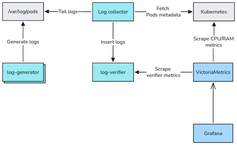 Log collector - the system under test. Tails Pod logs from /var/log/pods or /var/log/containers,