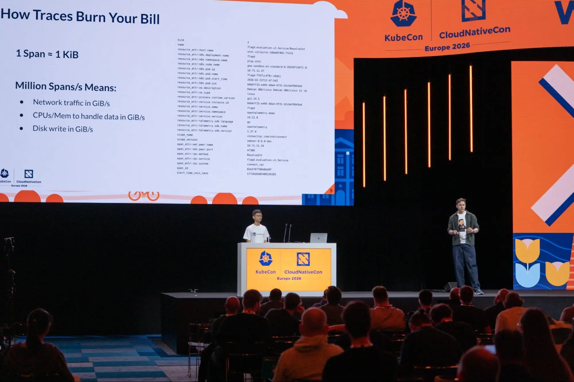 This talk drew strong interest from the audience, reflecting a broader industry focus on controlling telemetry costs and the growing need for practical strategies to reduce the overhead of distributed tracing. The official video of this talk can be watched on the CNCF YouTube channel, here. Read all about the technical aspects of this talk in our blog article.