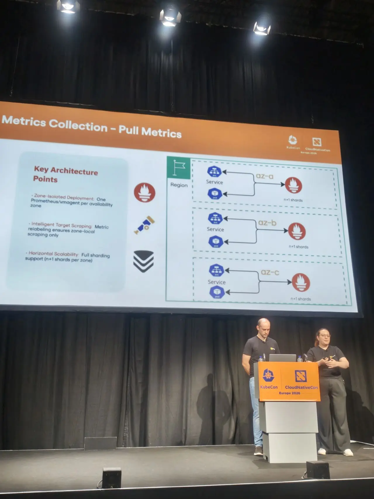 What made this session particularly relevant was its practicality. The architecture did not rely on proprietary components or complex abstractions, but instead used existing mechanisms in a disciplined way. The result was not only lower cloud spend, but also a more predictable, resilient metrics pipeline, forging an observability blueprint.